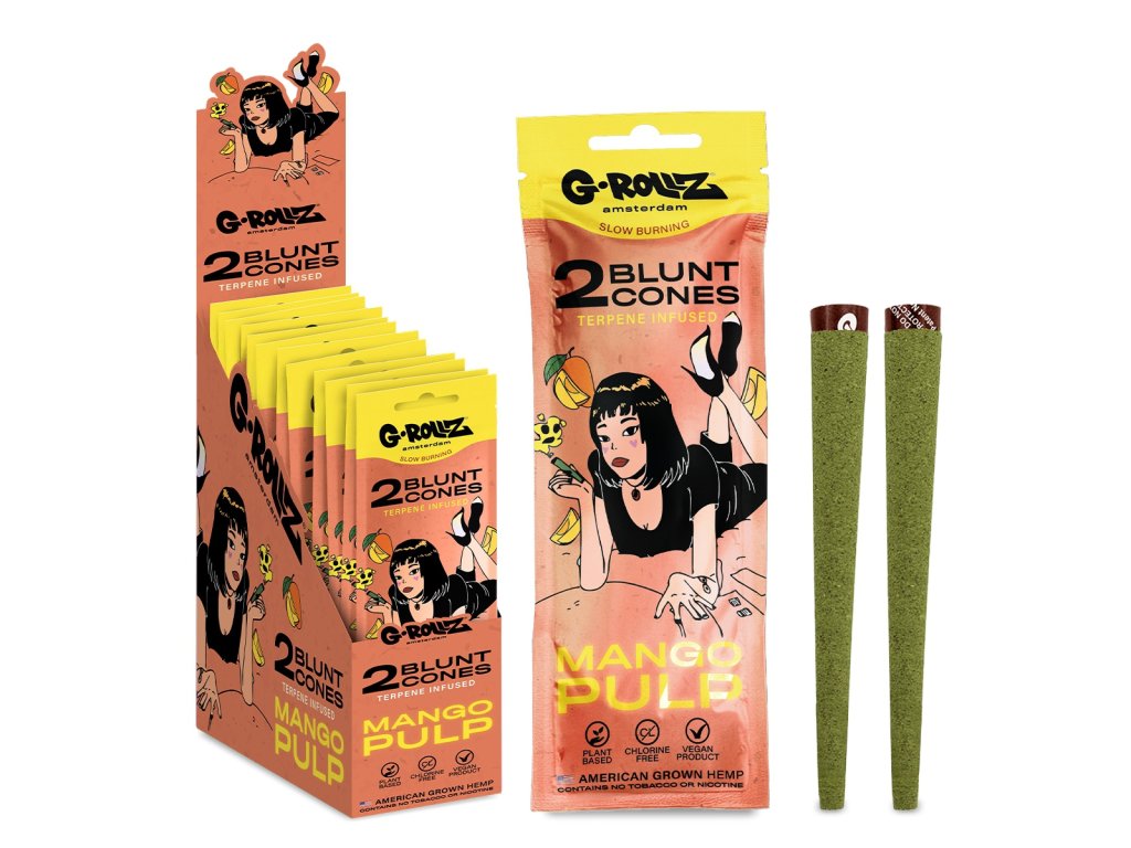 Tieto predvalcované kornútky G-Rollz sú vyrobené z najkvalitnejších kvetov pestovaných v USA a sú napustené terpénmi vyrobenými v Amerike.