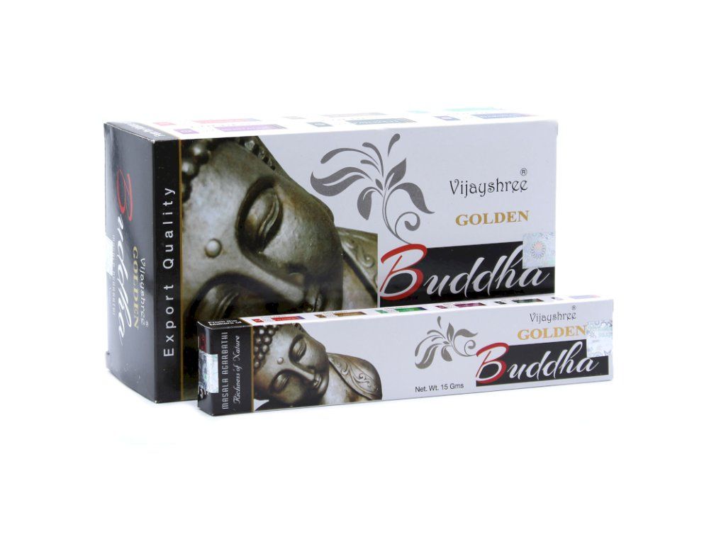 Golden Nag - Buddha 15g je vyrobené zo 100% prírodných materiálov, bez akýchkoľvek chemických prímesí. Obsahuje Plumeriu, známu viac ako Frangipani. Zmes polokvapalných živíc, prevzatých zo stromu Ailanthus malabarica im poskytuje charakteristickú krémovú farbu a vlhkú textúru. Po ich zapálení sa vo vašej miestnosti vyskytne veľmi príjemná vôňa po dlhú dobu a vytvorí Vám príjemnú atmosféru. Sú ručne šúlané v Indii pomocou čistých výťažkov a najjemnejších vonných olejov.
