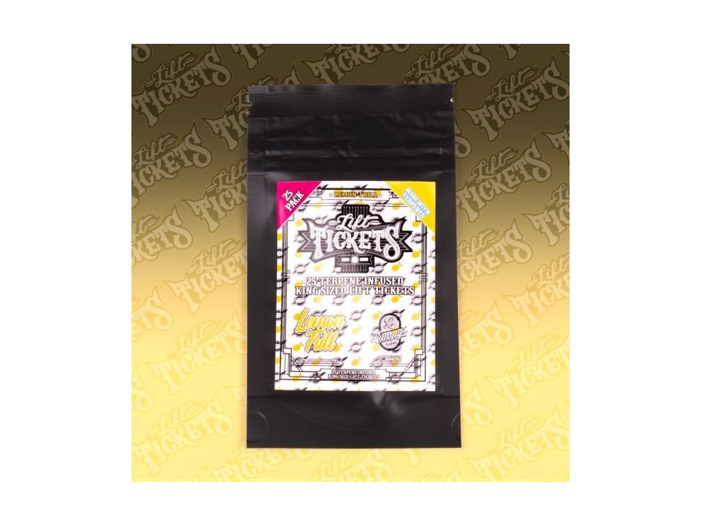 Lift Tickets Lemon Trill - Terpénmi napustené rolovacie papiere dovezené priamo z USA od nikoho iného ako od Lift Ticket Laboratory. Tieto ploché balenia obsahujú 25 nerozbalených papierov KingSized s príchuťou citrónu pre tých, ktorí si radšej rolujú svoje vlastné na rozdiel od už vopred predmotaných papierikov, ktoré sú momentálne v predaji. Dodáva sa vo vzduchotesnom uzatvárateľnom vrecku (s funkciou ochrany detí); ktoré pomáha pri konzervácii terpénu, takže zakaždým, keď si idete dať tento papierik naplnený terpénom; je rovnako čerstvý ako pri prvom otvorení.