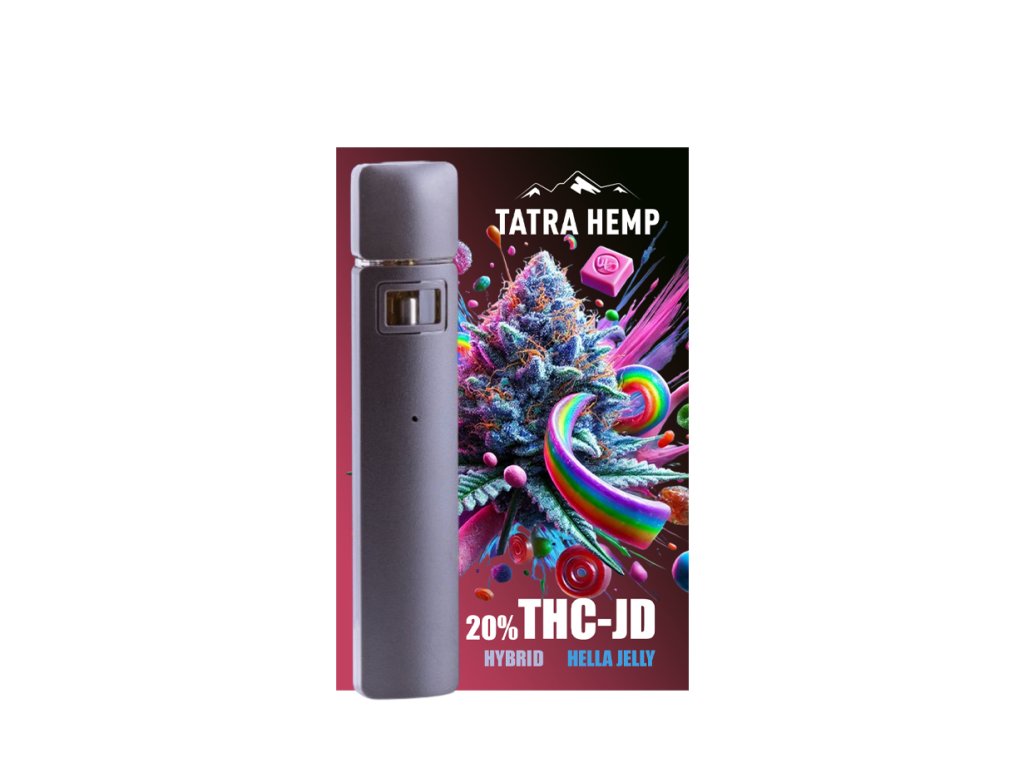 THC-JD Hella Jelly Disposable je prémiová vape náplň, ktorá kombinuje vysokokvalitné kanabinoidy, vrátane nového a inovatívneho kanabinoidu THC-JD. Tento produkt je ideálny pre tých, ktorí hľadajú silný zážitok z vapovania, s výnimočným účinkom a jedinečnou chuťou.