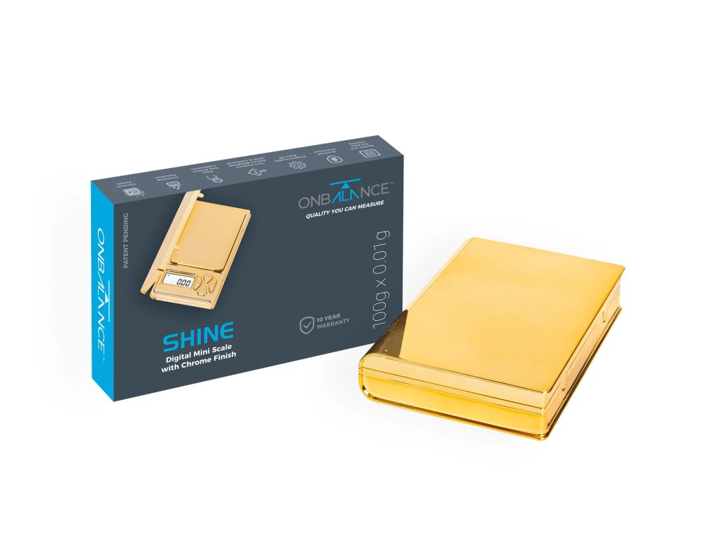 Shine je prvá plne chrómová máčaná vrecková váha na svete, ktorá je k dispozícii v zlatej a dúhovej farbe. Tento konkrétny projekt trval viac ako 3 roky vývoja, aby sa zaistilo, že výroba a kvalita sú na najvyššej úrovni. Naša oddanosť a vytrvalosť pri mnohých pokusoch a omyloch sa nakoniec vyplatili – túto váhu môžete dokonca použiť ako zrkadlo!